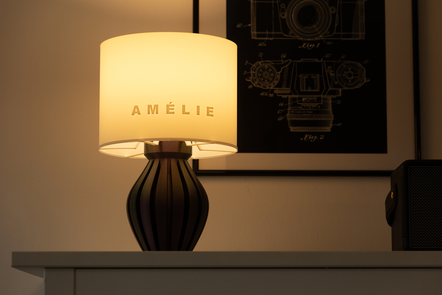 Abajurul transmite o lumină confortabilă de culoare galbenă deschisă, aducând o senzație caldă în încăperea ta. Este realizat din materiale PLA, PLA fiind un plastic prietenos cu mediul înconjurător, ecologic și biodegradabil.