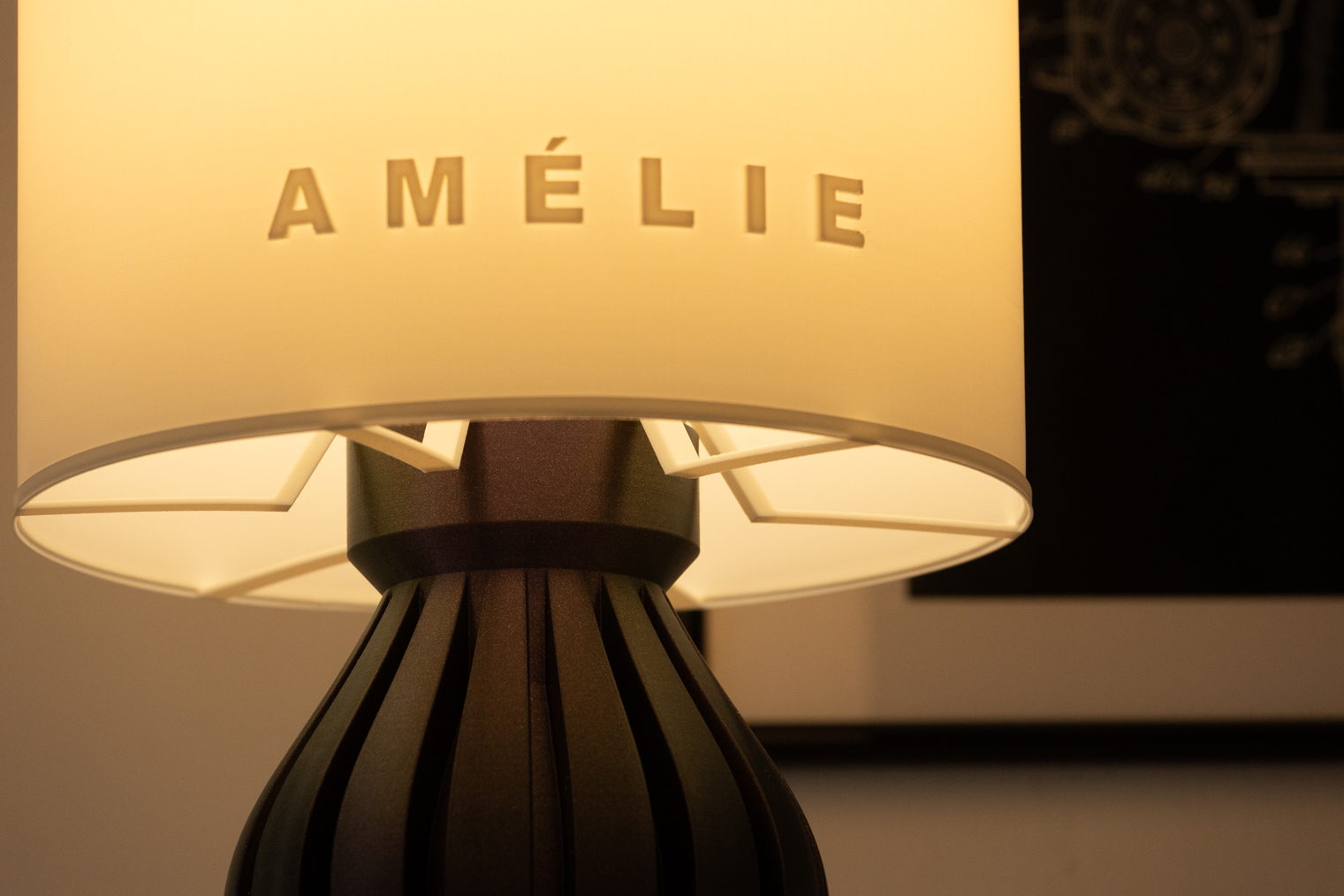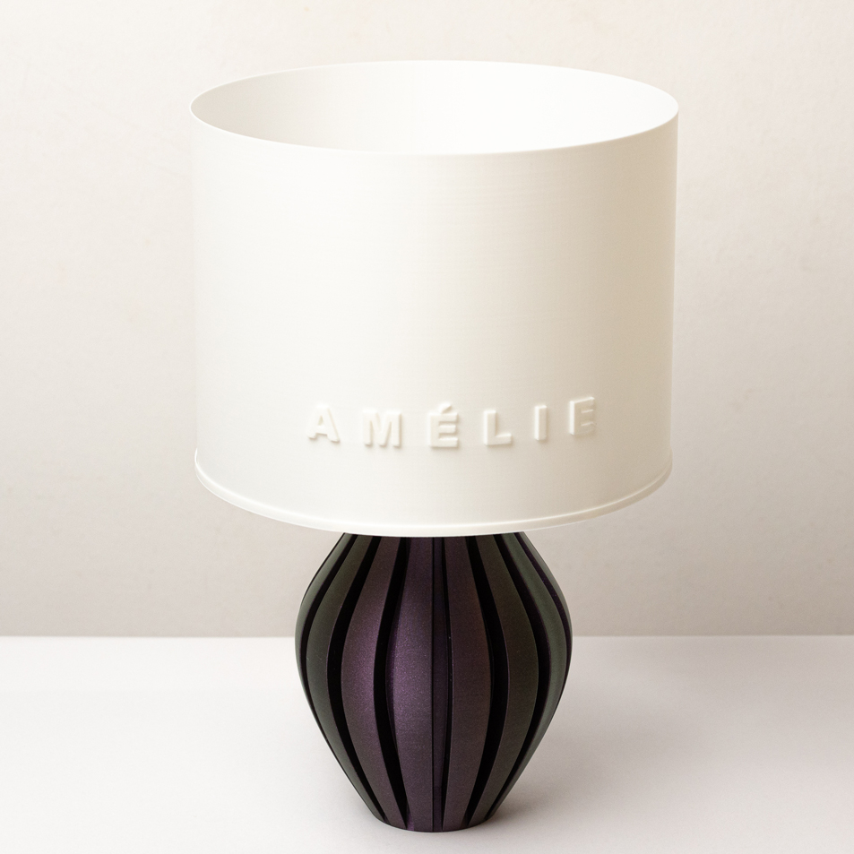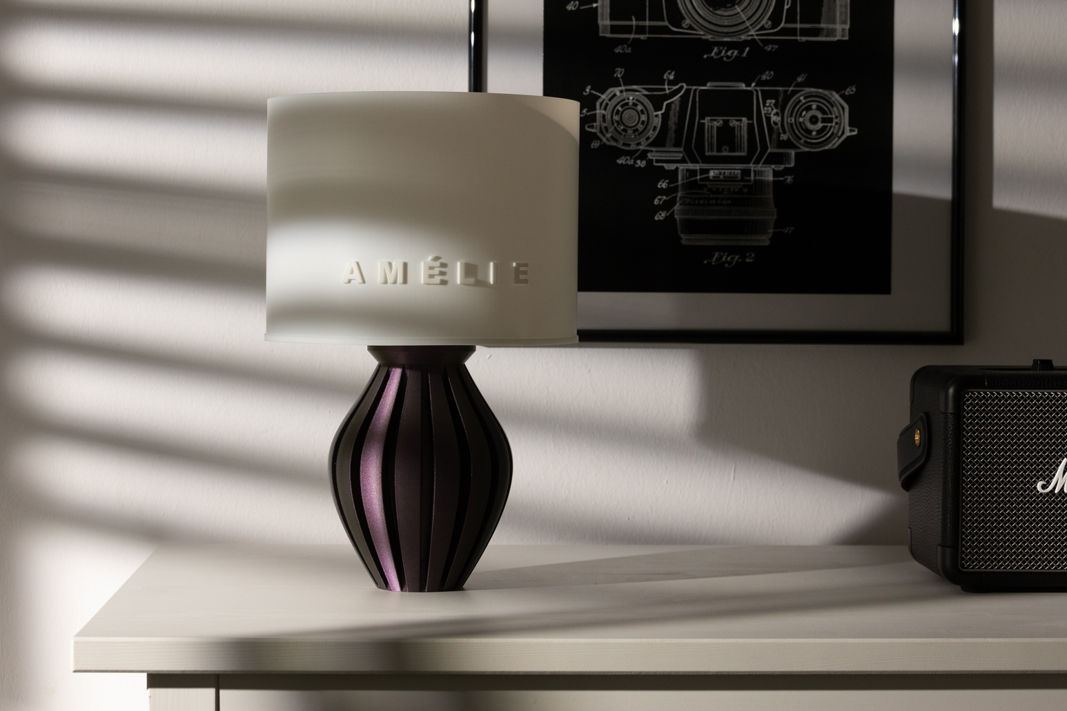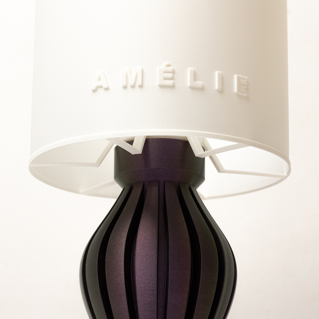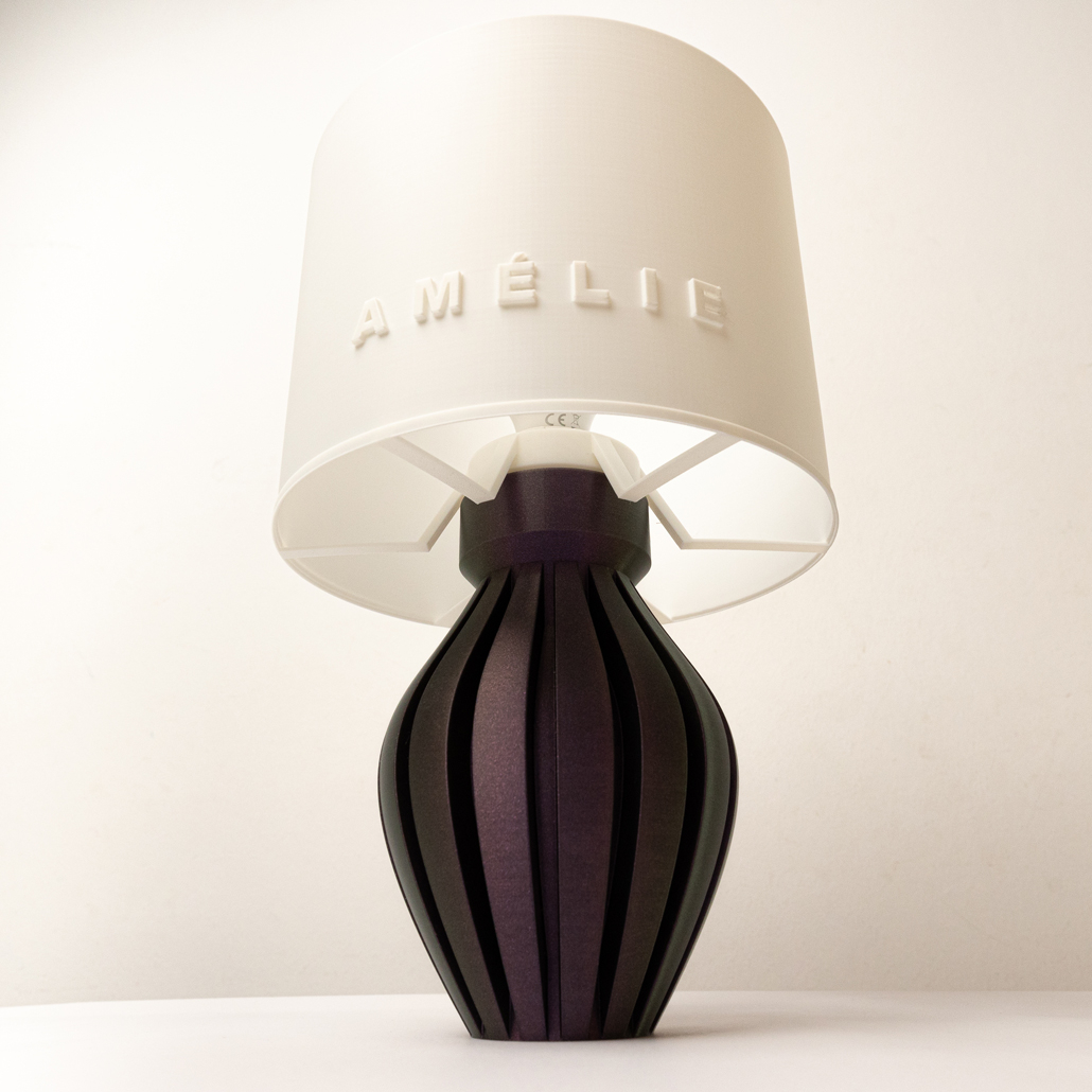 Produsul este o lampă de masă ambientală Art Deco realizată cu technologia de printare avansată 3D din plastic pe bază de porumb. Proiectată, fabricată, asamblată și expediată printr-un proces 100% neutru din punct de vedere al carbonului, alimentat cu energie regenerabilă. Transportul se face cu materiale reciclate, fără plastic.